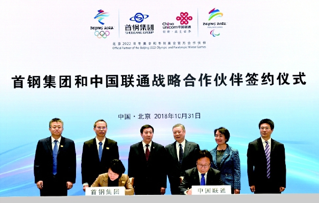 10月31日,首鋼集團和中國聯(lián)通在首鋼園區冬奧組委所在地舉行戰略合作伙伴簽約儀式。北京市副市長(cháng)、北京冬奧組委執行副主席張建東,北京冬奧組委秘書(shū)長(cháng)韓子榮;中國聯(lián)通集團董事長(cháng)王曉初,副總經(jīng)理買(mǎi)彥州、梁寶??;首鋼集團領(lǐng)導張功焰、王世忠、梁捷及中國銀行、安踏公司、中國石油、中國石化等北京冬奧會(huì )合作伙伴代表出席簽約儀式。